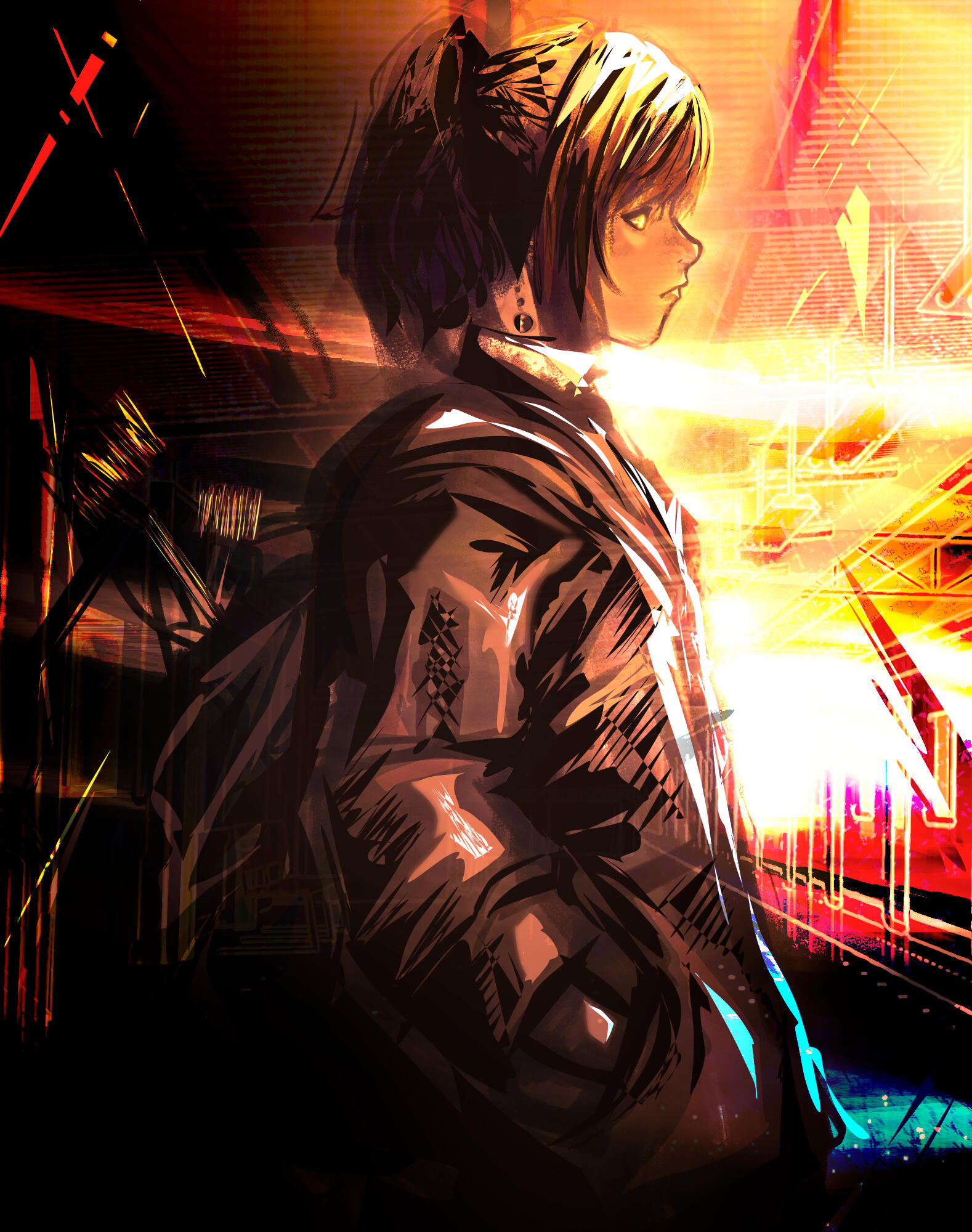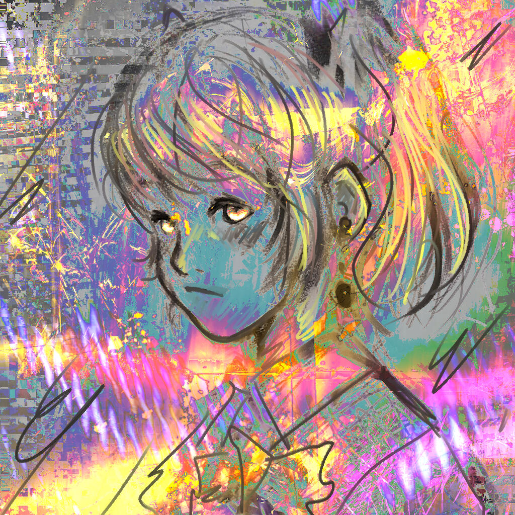 The train ride home was quiet.Streaks of orange and blue passing through the window, the city smearing past her.Sanae watched it all disappear, shoulder resting against the glass."..."Her reflection floated, cut through by passing lights.For a while that was enough. A quiet resting place to gather her thoughts....“Next stop, Asahine Station...” — the rest of the announcement blurred beneath the noise of the rails. The train rumbled softly before it slowed — brakes hissing, the sound pulling her back. She blinked."Don't forget any belongings..."A sigh left her as she rose, picking up her bag as the door opened....The platform was empty—mostly.Sanae sat on a bench. Waiting. Neon lights buzzing overhead. Thoughts drifting back to the place she'd just left.She’d moved slowly, absorbed everything. Some pieces had held her gaze.Some she even liked — or thought she did.Did I really not draw anything?The thought slipped in uninvited, quiet and stubborn. Her brow knitted.She glanced up at the station screen. Squinting, trying to catch the numbers, as if meaning might appear if she stared long enough. Her foot started tapping before she noticed.Five minutes, huh?Something about it pushed more than it should have.A sigh escaped her, her body tilting forward.A thought.That large abstract piece again —She’d thought it moved her.Maybe it didn’t.The thought stayed there, thin and dry. An uncertainty that wouldn’t settle —her thoughts hanging like dust caught in daylight."Asahine - Direction, Otohama"The station voice crackled through the air.Finally..